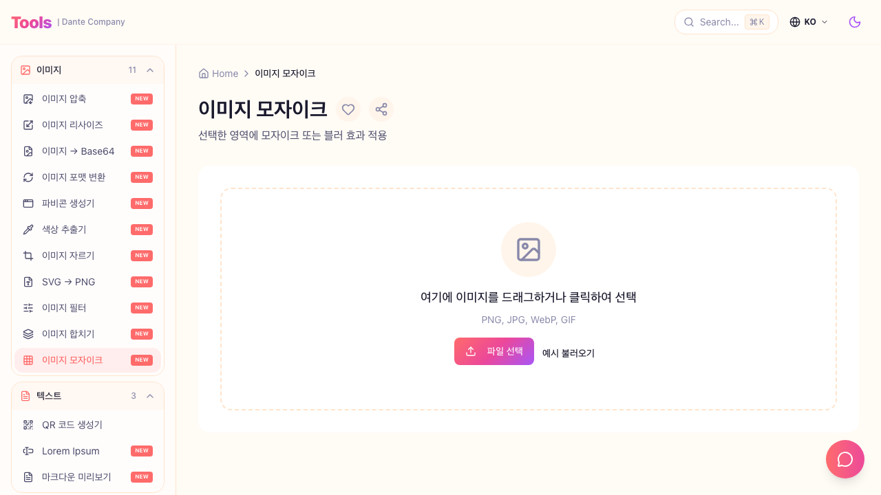 포토샵 켜기엔 너무 귀찮고, 앱 깔기도 싫고. 그래서 만들었습니다 - 브라우저에서 바로 쓸 수 있는 이미지 모자이크 도구예요!